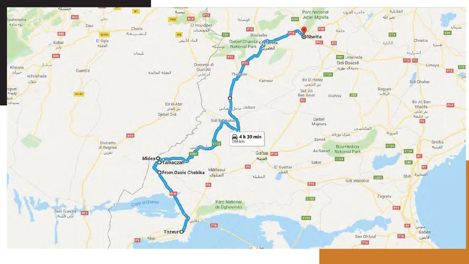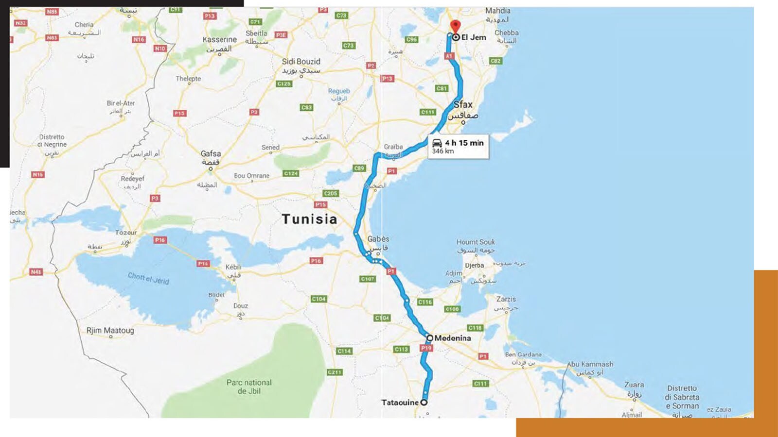 We left 8 days ago, and have explored Tunisia as far as the inhabited southern districts. Beyond lies the immense Desert Horn, bounded to the south-east by Libya and to the south-west by Algeria, but the time has come to quickly make ground as we travel northwards. Today we will be covering many miles of rather boring roads, but Tunisia still has quite a few tales in store for us!