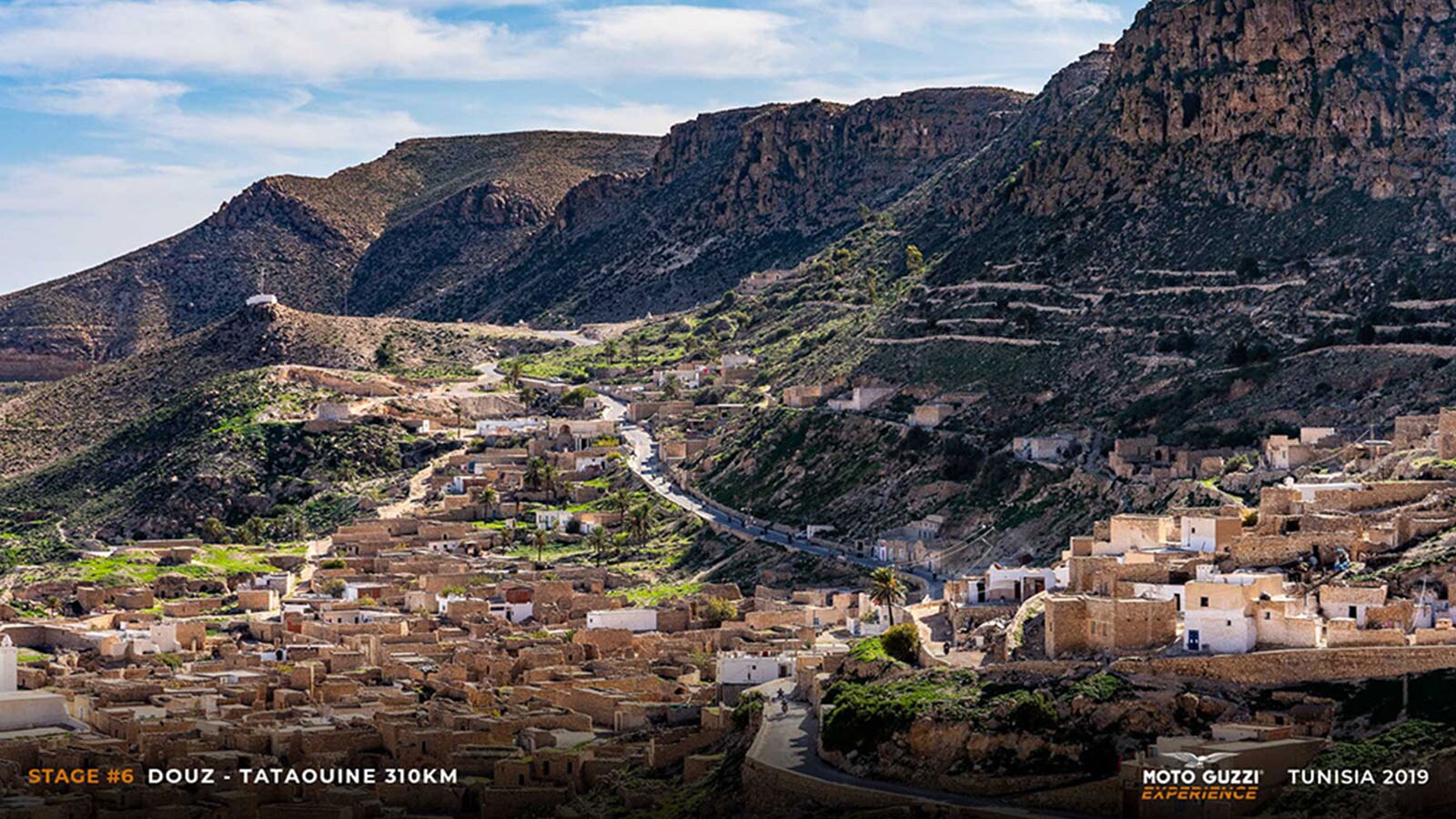 It doesn’t take long to leave the silhouettes of the dunes behind us, making our way into a mountain desert, where the straight stretches give way to magnificent curves. After an hour of riding, we stop at Tamazret, right at the top of a particularly exciting stretch of riding. So, while some of us sip a very special almond tea and taste the “gazelle horns” (local sweets made of puff pastry filled with almonds and honey, reminiscent of the shape of a horn), we take advantage of the pause to take some photos of six die-hard bikers leaning in, who seem to never have enough of curves and kilometres.We rejoin the group at the entrance to Matmata, a picturesque Berber village, with its typical building style of troglodyte houses carved into the rock that we’ve already begun to glimpse over the last few kilometres. When we arrive in the village, however, we discover that the forced fuel supply can’t be carried out at the petrol station, which had closed who knows when. The only thing to do is ask for help from the inhabitants, who bend over backwards to find 5 litres per bike, which is enough for us to continue. In just a few minutes we become the town's entertainment for the day, and the mishap, as always happens, proves to be an opportunity to break through the rhythms and boundaries imposed by our fully-packed schedule, letting our helmets take in a bit of that human landscape that we have seen for days now whizzing by us. But everything has a price: our schedule is unforgiving and the visit to Matmata has to be skipped. We get back on the road with no regrets, because what’s ahead is even better!