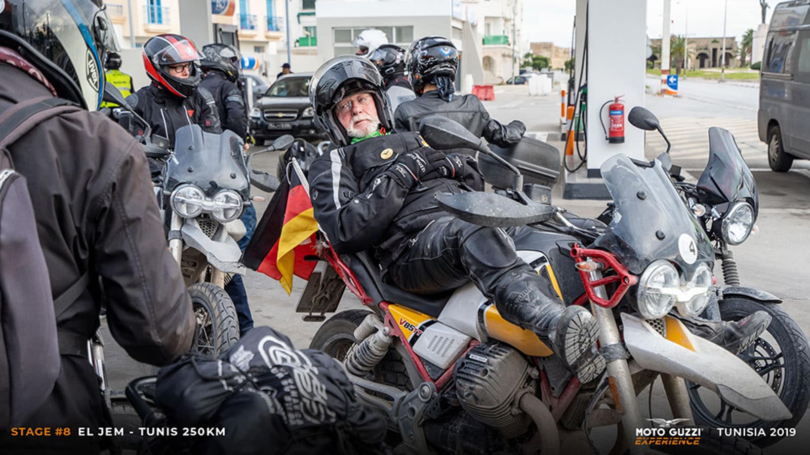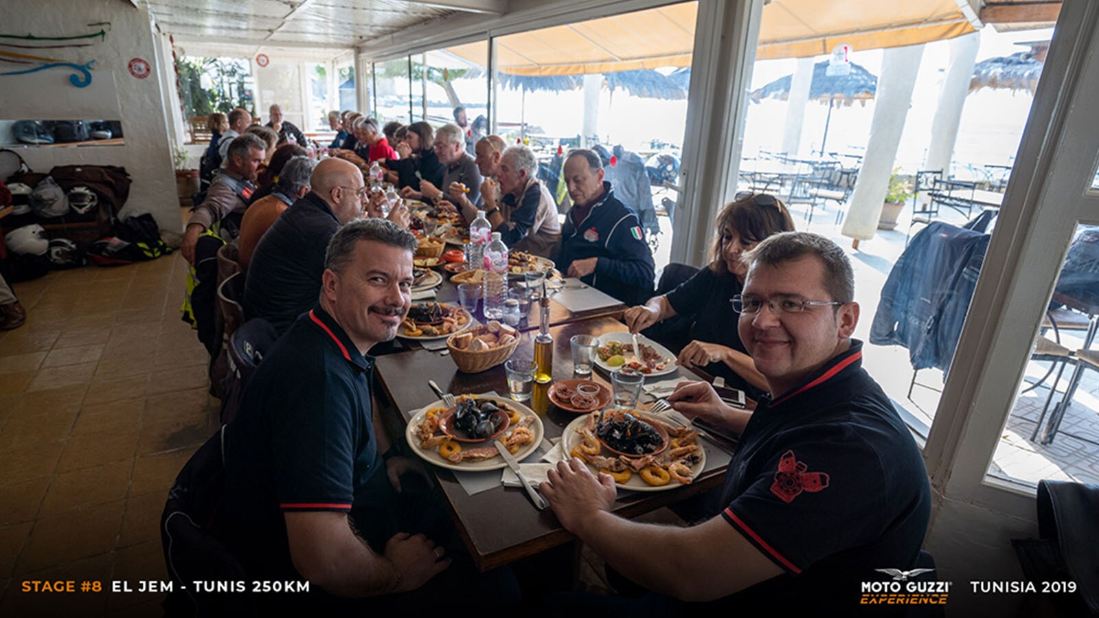 Attentive ears listen to the instructions about the strict plan that awaits us, and smiling lips savour the spirit of the journey, as well as that of the group. Speaking of the group, it is an international crowd from the United States, France, Germany, Finland, Switzerland and - of course - Italy. All united by their membership to The Clan and their passion for the Eagle from Mandello del Lario. Tunisia awaits us!Rough seas wake us up early: it seems that the weather in Tunis is no better than what we’ve left behind. We’ve run into our fair share of setbacks, customs stamps and complications, but we don’t care: we made it! It’s late afternoon and the tyres of our Moto Guzzi bikes are on African soil! To be fair, it’s wet tarmac rather than soil, it’s dark, the streets are dimly lit, and it’s only a few kilometres to the hotel, but we’re already excited when we see our rumbling convoy ready to take on Tunisia… is it a bit too much? Not at all!