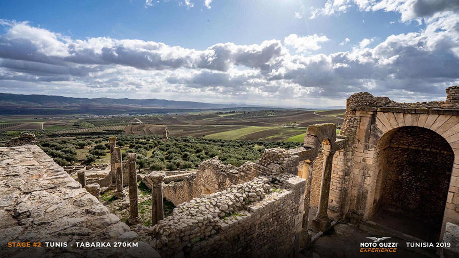 What we are less thrilled about, however, are the rain and the cold, which accompany us for the majority of the morning’s ride. Fortunately, winter’s grip loosens just as we are approaching the first stage, with the sun finally lighting up the road towards the ruins of Dougga.